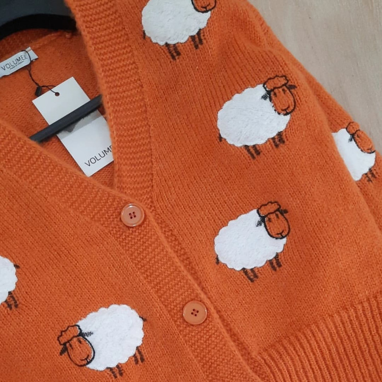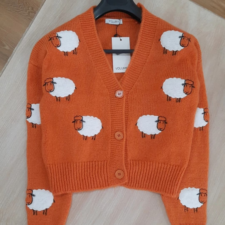 بافت فانتزی ترک با طرح گوسفند فوق العاده با کیفیت عالی از جلو دگمه میخورد