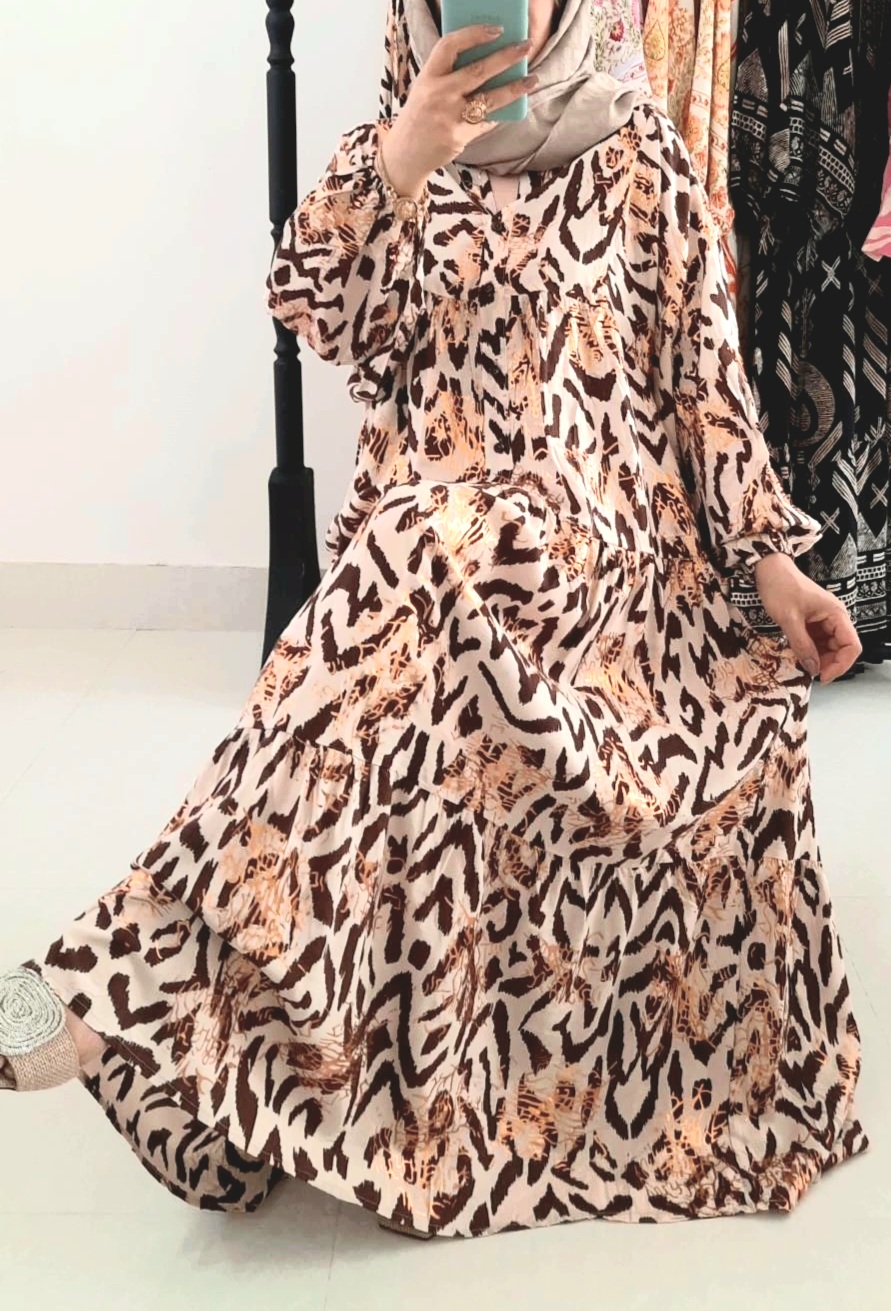 پیراهن ساحلی بلند زنانه متاسب فصل رنگبندی کرم قهوه ای طلاکوب سایزبندی یک و دو از ۳۸ تا ۵۰ قد پیراهن ۱۳۵ سانت بدون کمربند پیراهن ساحلی ترک زیبا سبک و لطیف با ریزش عالی