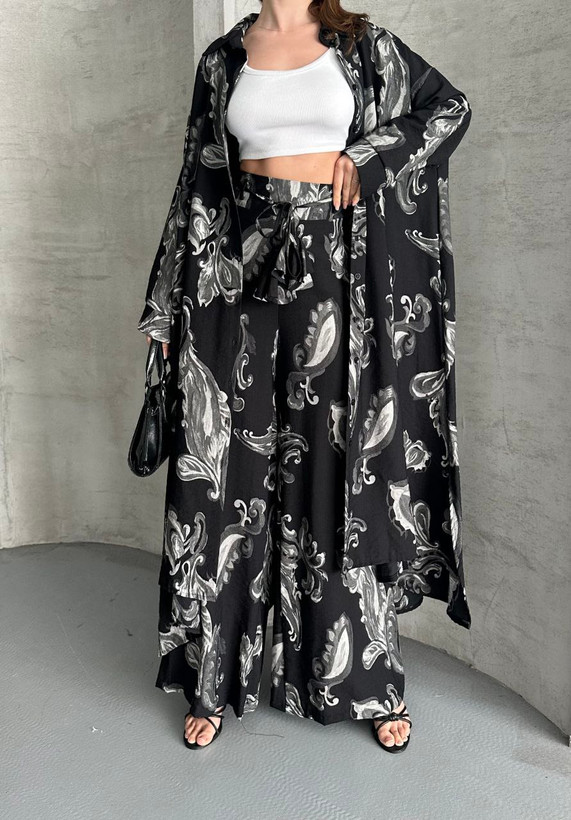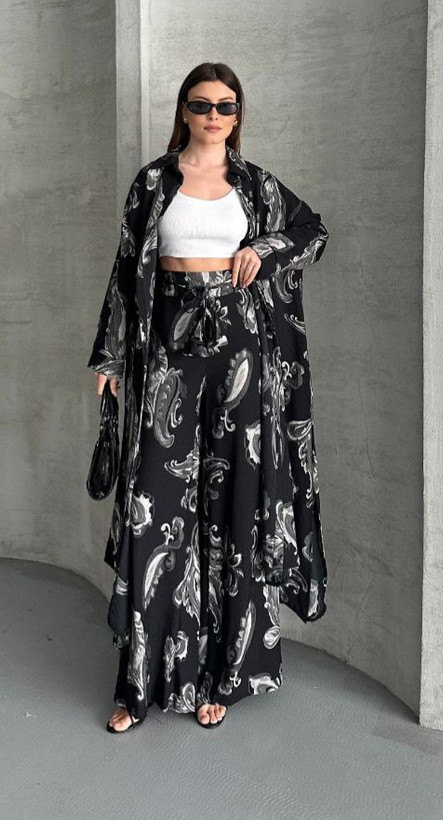 ست مانتو شلوار بلند زنانه ترک با طرح اسلیمی و رنگ مشکی