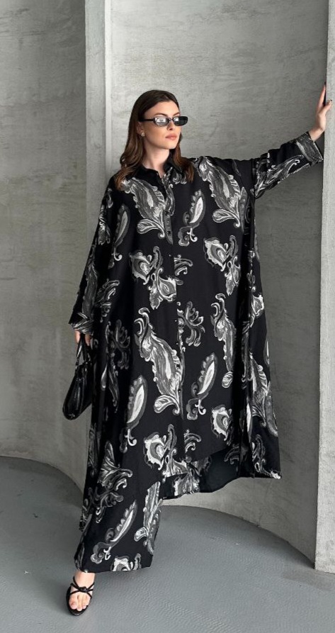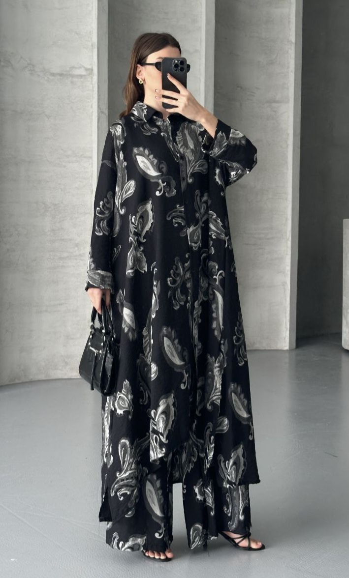 ست مانتو شلوار بلند زنانه ترک با طرح اسلیمی و رنگ مشکی